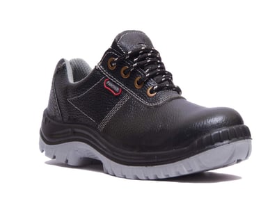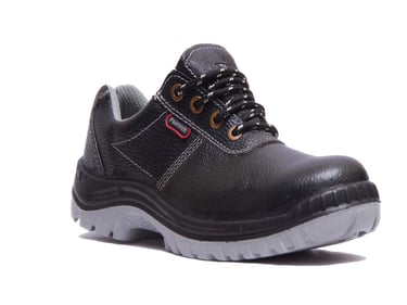 Safety shoes and boots with steel toe caps, anti-slip soles, and puncture-resistant midsoles for maximum foot safety on construction and industrial sites.